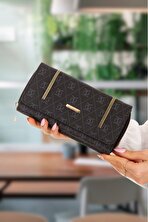 Adelina BagsKadın Siyah Venesia Telefon Kağıt Bozuk Para Bölmeli Kartlık Kilitli Bilek Askılı Portföy Cüzdan