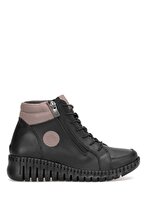 MammamiaD25KB-4535 Kadın Hakiki Deri Düz Bot Siyah