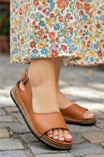 Hakiki Deri Çapraz Bantlı Arkadan Ayarlı Rahat Taban Dolgu Topuk Kadın Sandalet NAPA-311