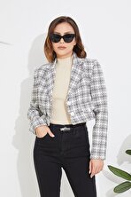 Kadın Slim Fıt Kruvaze Yaka Dokuma Desen Kısa Ceket ŞULE-4347