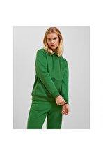 Kapüşonlu Rahat Kesim Yeşil Kadın Sweatshirt 12223961