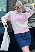 Pembe Boğazlı Kadın Triko Kazak Mg2535
