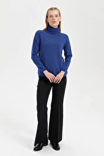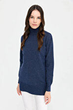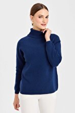 Kadın Tam Balıkçı Yaka Klasik Yün Kazak 23164 Indigo