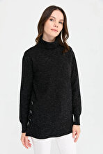 MizalleBalıkçı Yaka Broş Detaylı Saks Mavi Uzun Triko Kazak