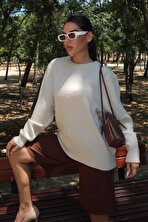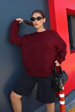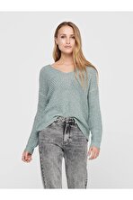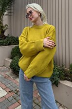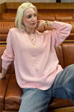 MizalleEkstra Oversize Düşük Kollu Selanik Örgü Saks Mavi Kazak