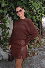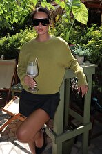 Kadın Kendinden Dokumalı Amerikan Model Kısa Kol Triko Kazak 30131 Petrol