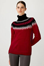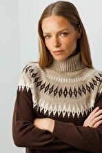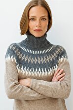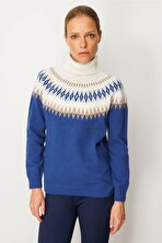 Desen TrikoKadın Tam Balıkçı Yaka Klasik Yün Kazak 23164 Indigo