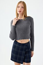 Desen TrikoKadın Sıfır Yaka Klasik Yün Kazak 23163 Indigo