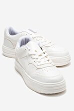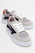 Cırtlı Bağcıklı Kadın Spor Ayakkabı BEYAZ BUZ TURUNCU LACI