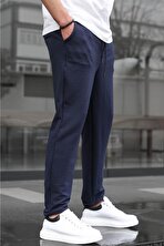 MadmextLacivert Bisiklet Yaka Nakış Deyatlı Kısa Kollu Erkek Tişört 7013