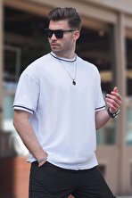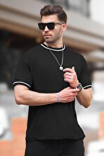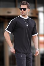 MadmextErkek Siyah Oversize Şerit Detaylı Basic Tişört 7023