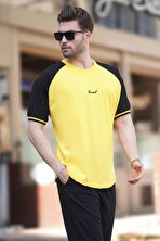 MadmextKoyu Sarı Bisiklet Yaka Nakış Deyatlı Kısa Kollu Erkek Tişört 7013