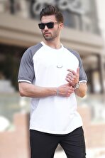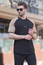 MadmextSiyah Bisiklet Yaka Kol Boyun Şeritli Overfit Tişört 7024