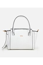 HotiçKadın Deri Beyaz Kilit Detaylı Tote Çanta