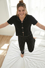 LelaBayan Pijama Takımı 6091435 SİYAH-KIRMIZI