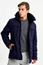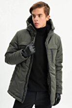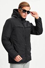 İçi Astarlı Su ve Rüzgar Geçirmez Cepli Kapüşonlu Erkek Mont