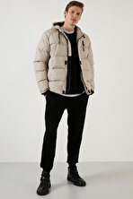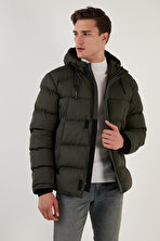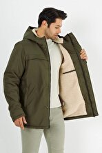 Haki Erkek Regular Fit Düz Kapüşonlu Mont