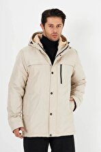 İçi Astarlı Su ve Rüzgar Geçirmez Cepli Kapüşonlu Erkek Mont