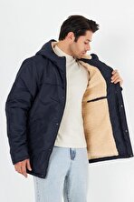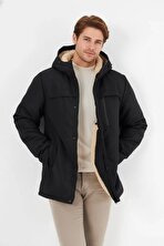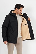 İçi Kürklü Su ve Rüzgar Geçirmez Cepli Kapüşonlu Erkek Mont