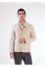 Bej Erkek Regular Fit Düz Renk Hakim Yaka Safari Mont
