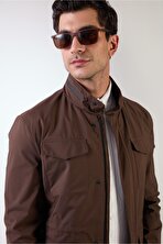 DufyBej Erkek Regular Fit Düz Renk Hakim Yaka Safari Mont