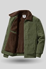 Erkek Dik Yaka Fermuar ve Çıtçıt Kapamalı Kapitone Uzun Mont 5444 Bej