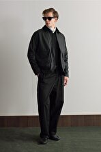 Erkek Kadife Yakalı Mont Ceket Siyah
