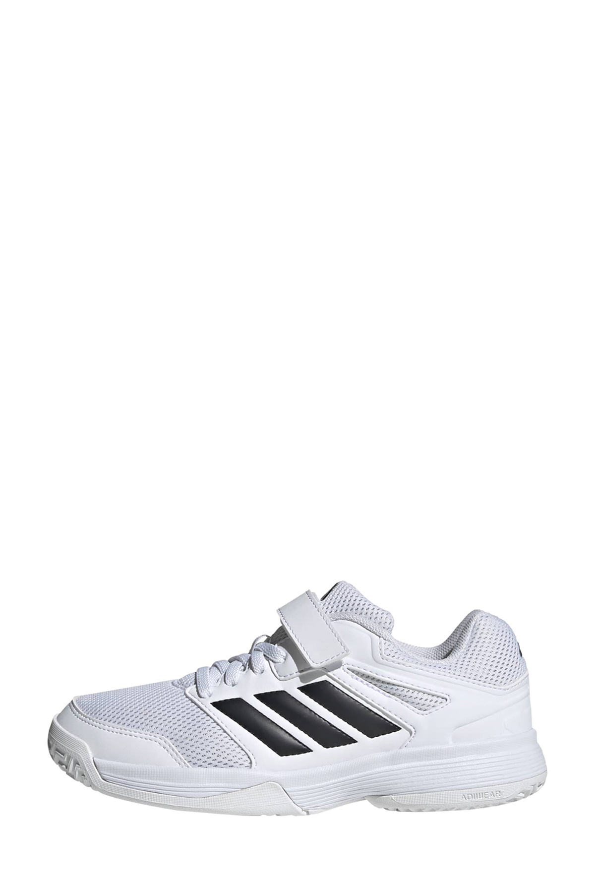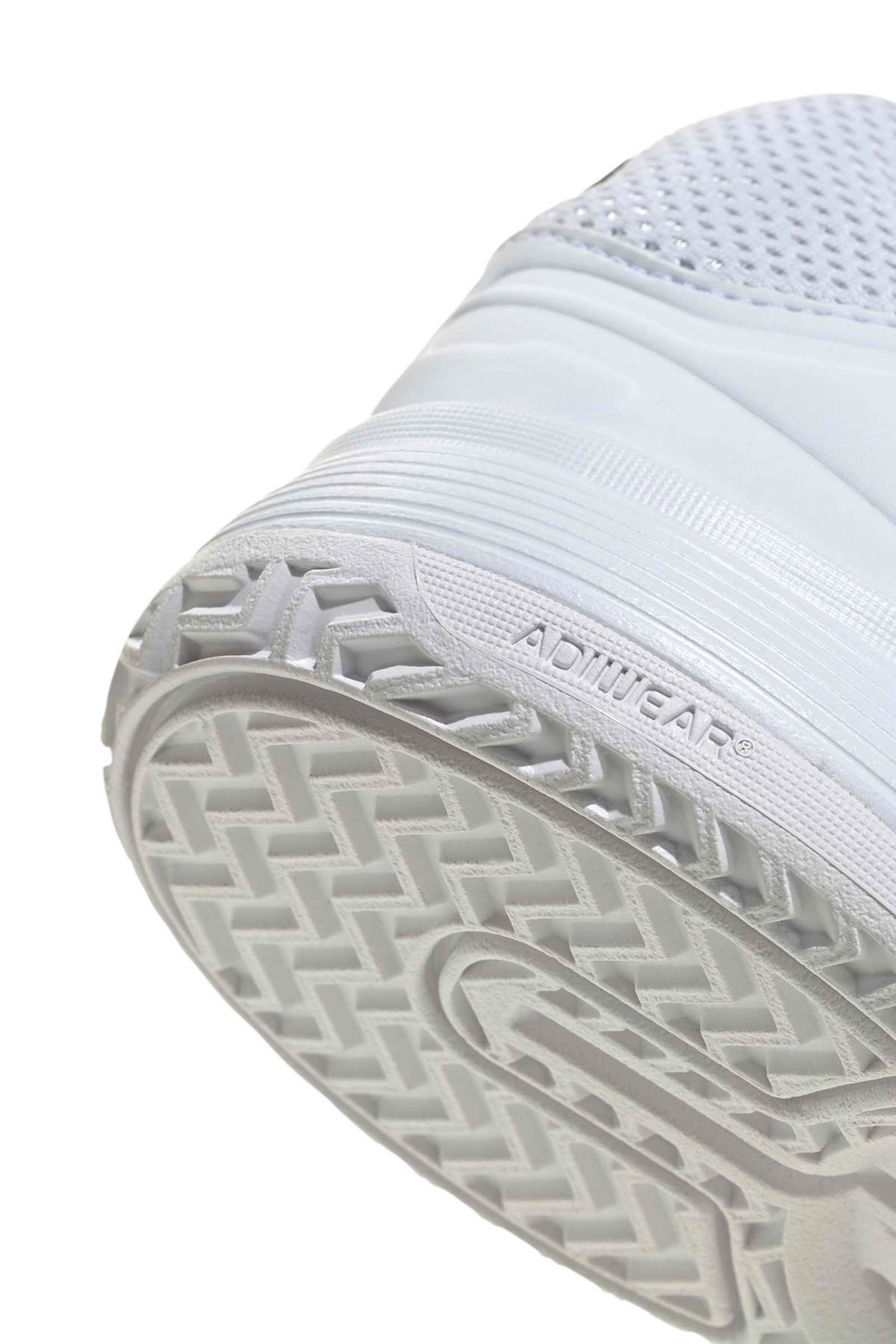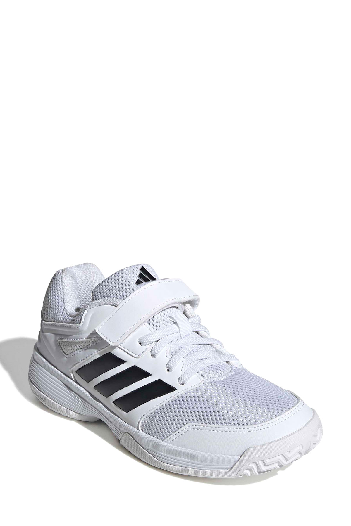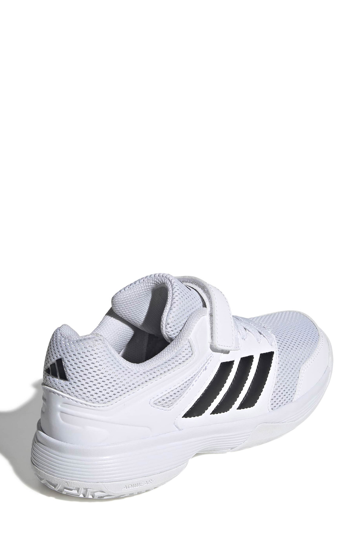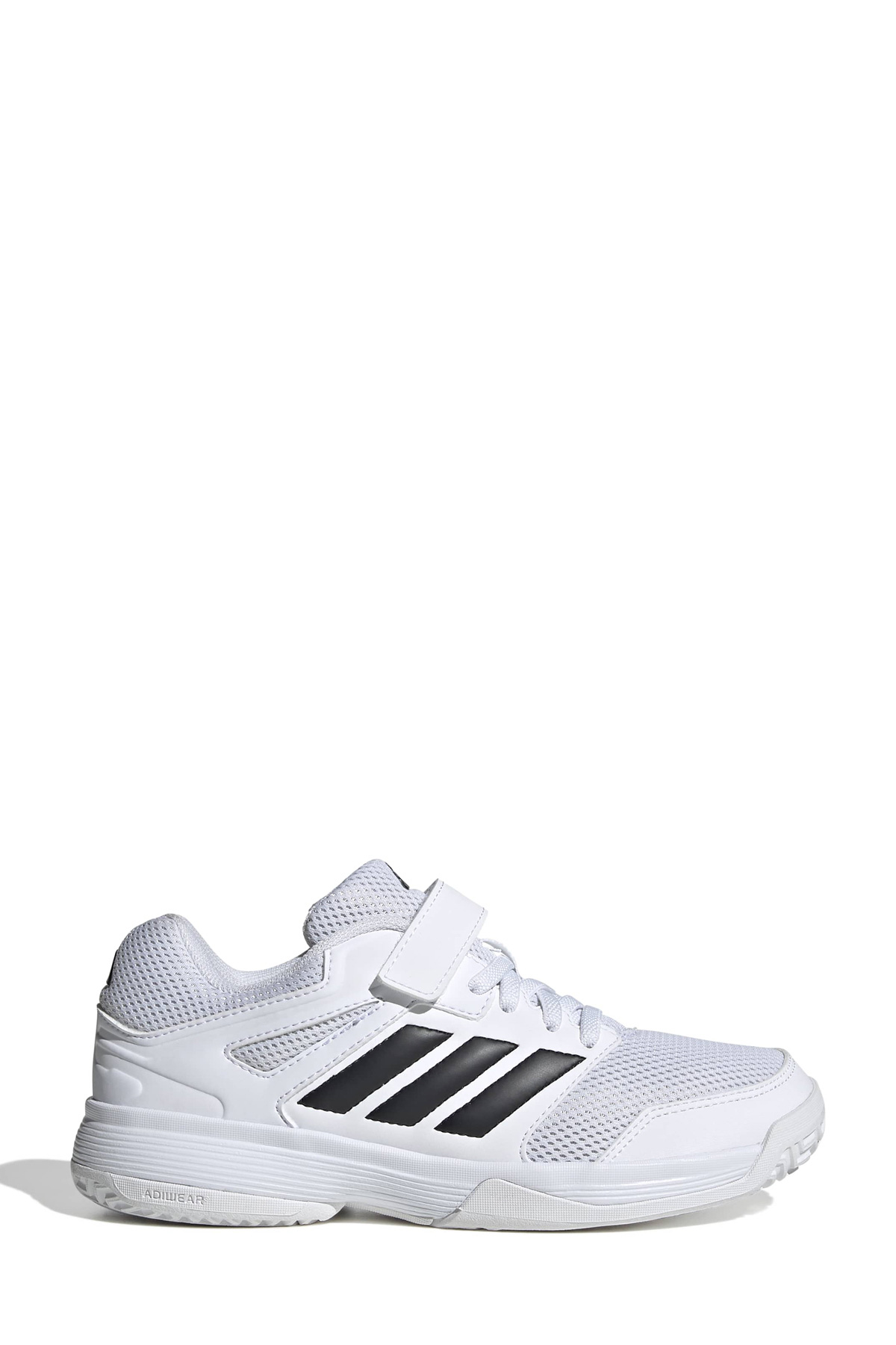 Bu adidas salon ayakkabısı ile sahada uçarcasına hareket edilebilir. Zemin tutuşu sağlayan kauçuk dış tabanlı model, en hızlı genç oyunculara bile ayak uydurabilir. Havalandırma sağlayan file üst yüzey serin kalmalarını sağlarken, cırt cırtlı bant ve bağcık kombinasyonu ayağı konforla sabitler. Zemini kavrayan Adiwear dış taban üzerine oturan yumuşak EVA, her zıplama ve koşuyu yastıklar.