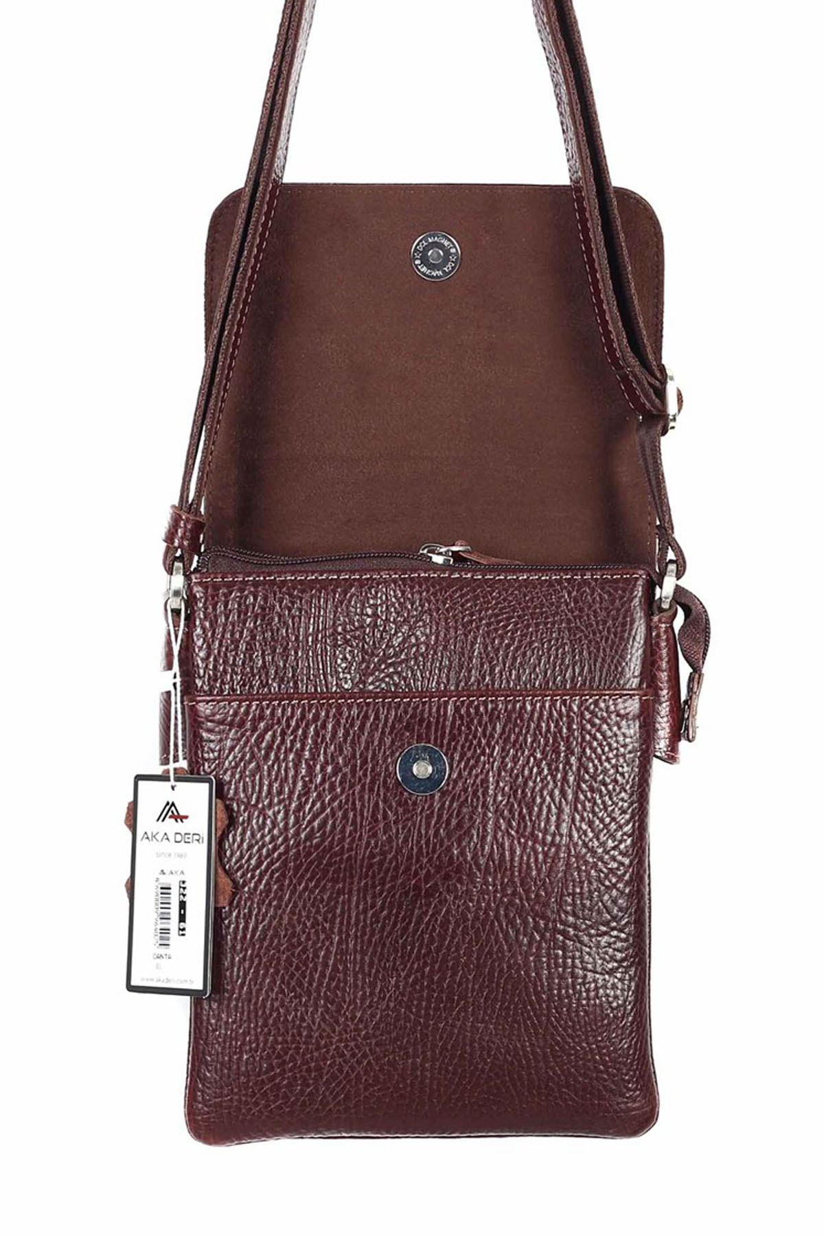 Askılı Deri Çanta Ölçüleri: 18 cm - 23 cm Askılı Deri Çanta Özellikleri iç Kısmında 3 adet Kredi Kartlık ve Fermuar Bulunmaktadır Ön Kısmındaki Kapak Manyetik Mıknatıslıdır iç kısmında Süet astar kullanılmıştır Kapak Altında Cep Bulunmaktadır iç kısmı orta Bölümünde Gizli Bölmesi Bulunmaktadır Arka Kısmında Fermuar Bulunmaktadır iç kısmında Tablet Dergi veya Özel eşyalarınız için Geniş Bölme Bulunmaktadır Omuzdan Askısını Dilediğiniz gibi Uzatıp Kısaltabilirsiniz Hakiki Dana Derisi olup Modeli AKA markasına aittir. Ürün faturası Sipariş ile Birlikte Gönderilmektedir.