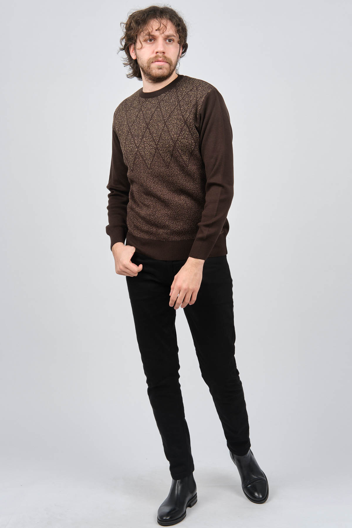 Ürün Tipi: Kazak;Materyal Bilgisi: %100 Akrilik;Kalıp Bilgisi: Standart;Detay: Bisiklet yaka, Uzun kollu, Önü desenli kazak;Model Ölçüleri(cm) / Üzerindeki Ürün: Boy - 188, Göğüs - 102, Bel - 90, Kalça - 103, / M Beden