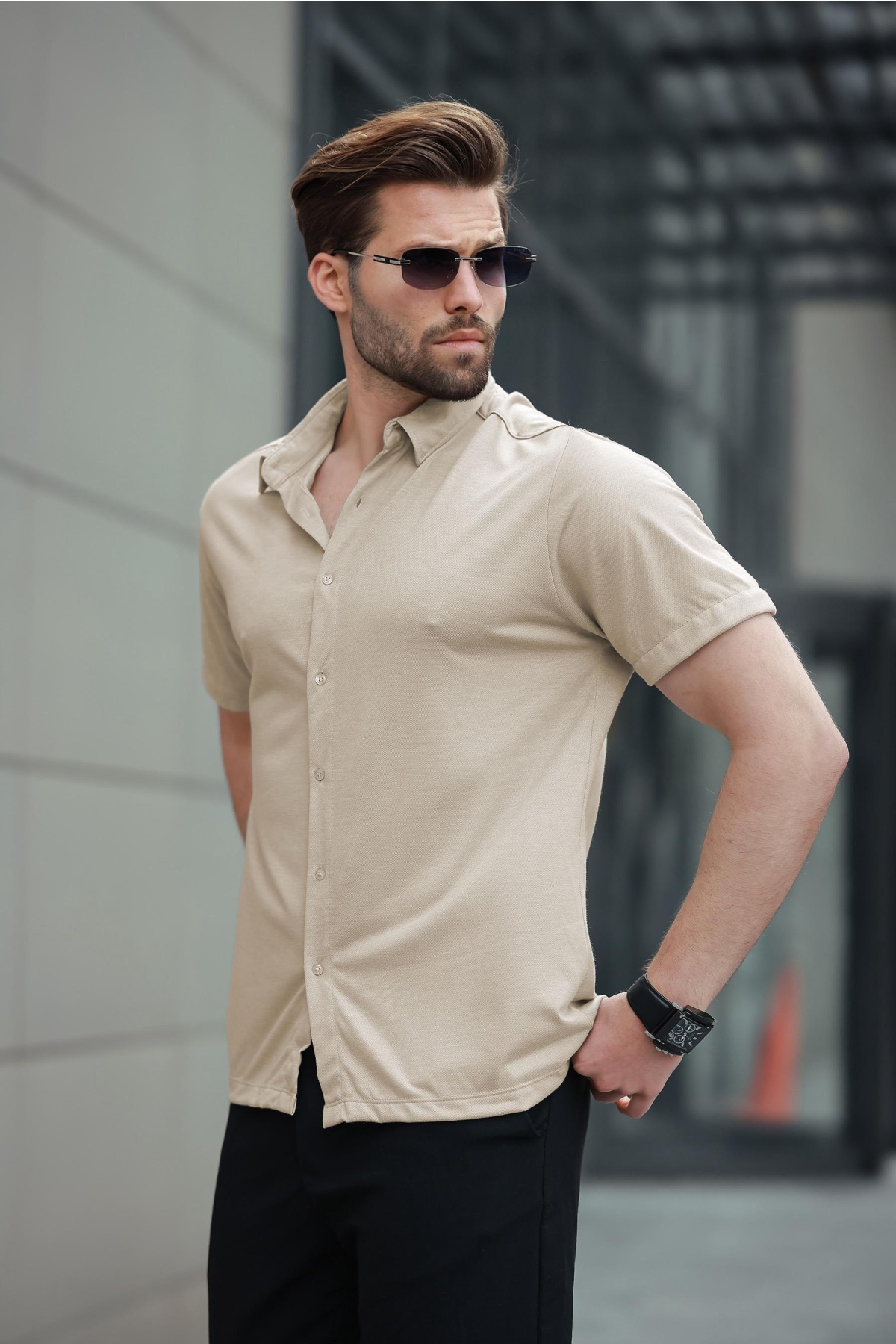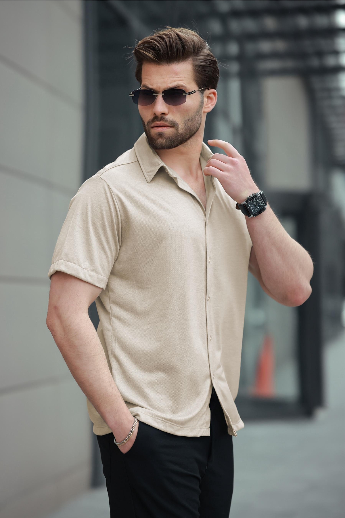 Madmext Bej Basic Kısa Kollu Erkek Gömlek E6760
