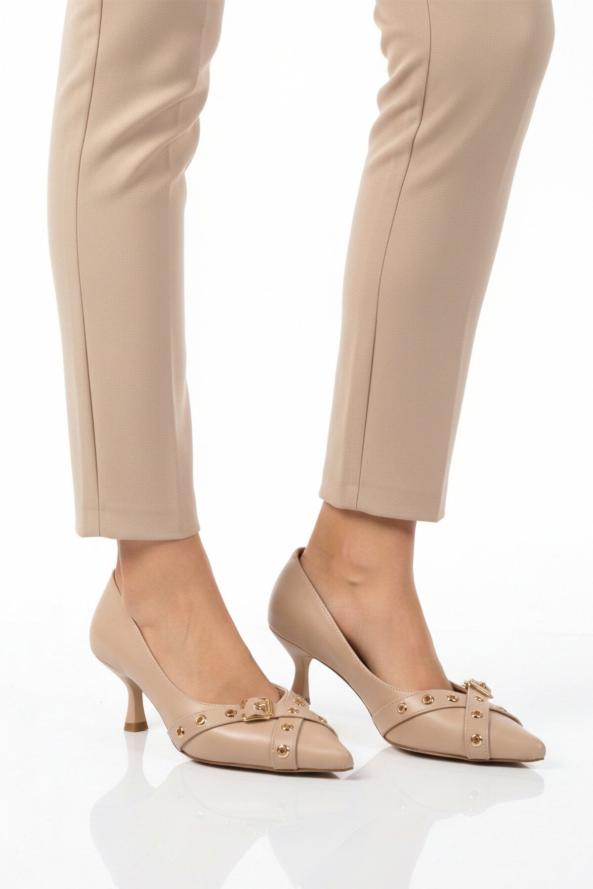 - İnce ve parlak topuk detayıyla dikkat çekicidir.