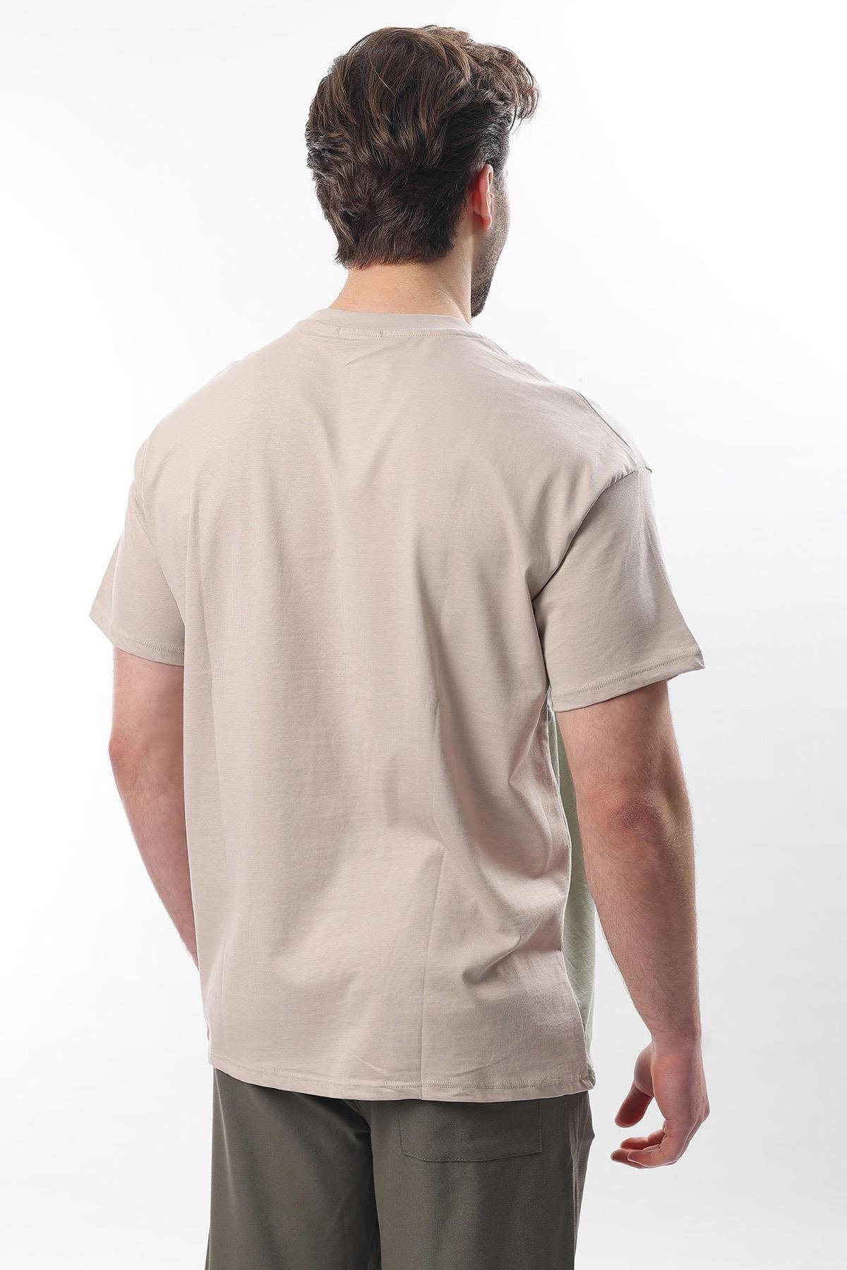 AnasayfaGiyimTişörtKısa kollu tişörtBej overfit garnili erkek t-shirt e7104