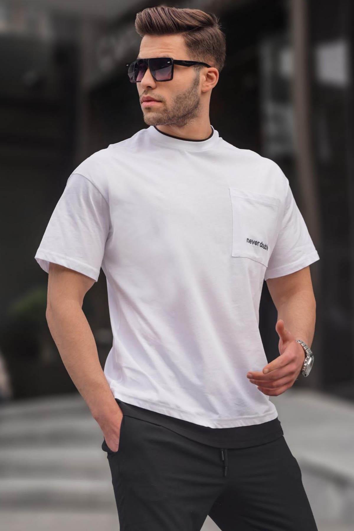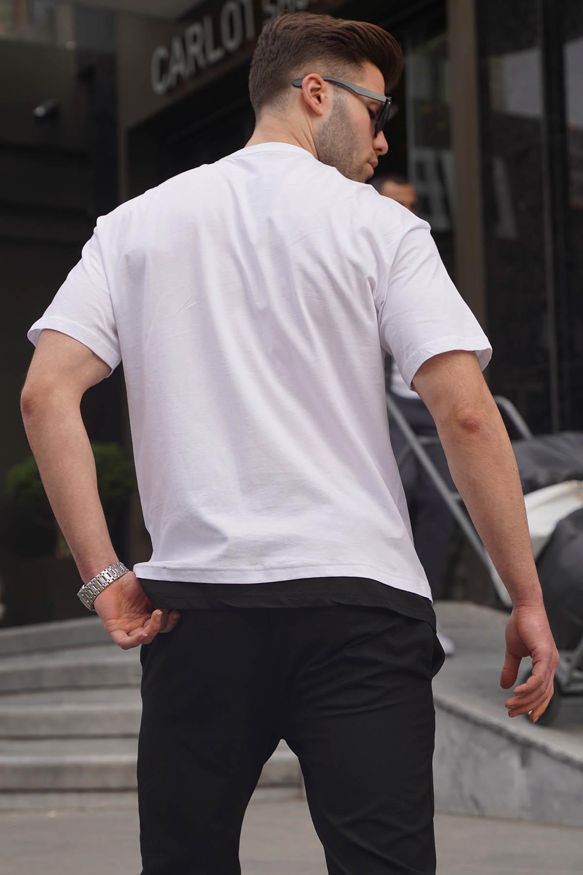 Madmext Beyaz Parçalı Basic Erkek Tişört 6090
