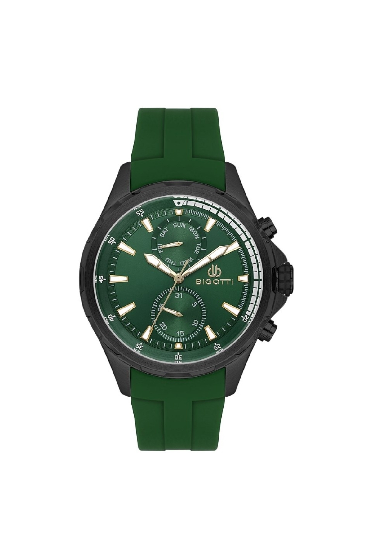 Ürün Özellikleri: Kayış Tipi: Silikon Kayış Rengi: Yeşil Kasa Çapı: 46 mm Cinsiyet: Erkek Kasa Şekli: Yuvarlak Kasa Rengi: Siyah Su Geçirmezlik: 5 ATM Mekanizma: Japon Quartz Kadran Rengi: Yeşil Sevdiklerinizle paylaşılan anlar zamanın en güzel armağanıdır. Modası geçmeyen zarif ışıltılı tasarım ürünler ve her tarza uygun en çok tercih edilen saat markalarımız ile kendinizi ve sevdiklerinizi mutlu edebilirsiniz ! Her biri özenle seçilmiş, uluslar arası garantilere sahip tüm saat markalarımız , her tarza uygun ve birden çok fazla markaların bulunduğu ve her bütçeye hitap ederek kalite ve şıklık açısından geniş işlevselliği bir araya getiriyor. İster günlük kullanıma uygun, ister özel davetlere uyum sağlayacak zarif bir model arıyor olun, ihtiyacınıza uygun birçok seçenek sizleri bekliyor.Yeni sezonun göz alıcı tasarımlarıyla karşınızdayız! Bigotti erkek ve kadın kol saatleri, çelik kasa yapısı ve su geçirmez özelliğiyle hem günlük kullanımda hem de özel günlerde ideal bir aksesuar sunuyor. Modern ve zarif tasarımı sayesinde stilinizi tamamlar, her anınıza eşlik eder.Sevgililer Günü, Anneler Günü, Doğum Günü, Yıl Dönümü gibi anlamlı günlerde sevdiklerinize şık ve kullanışlı bir hediye arıyorsanız, Bigotti saatler tam size göre. Hem kadın hem erkek modellerimizle, aşkı ve zarafeti zamanla buluşturun.Yeni sezon ürünlerimizi keşfedin, tarzınıza en uygun Bigotti saat ile stilinizi konuşturun! bigotti kol saati erkek kol saati kadın kol saati çelik kasa saat su geçirmez saat sevgililer günü saat hediyesi anneler günü için saat şık kol saati modelleri çift saat modelleri hediye saat önerileri sezonun en iyi saatleri özel gün hediyesi saat günlük kullanıma uygun saat