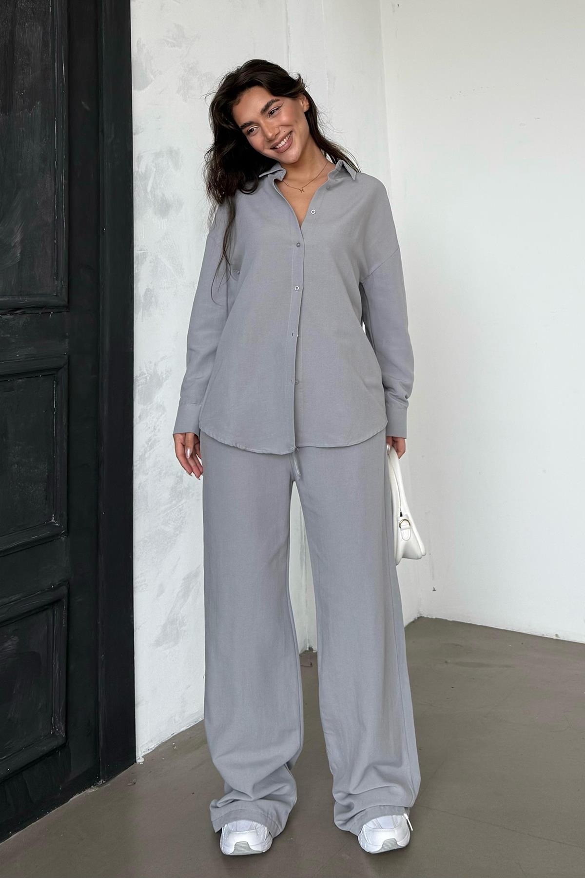 AnasayfaGiyimAlt üst takımBoyalı gri keten kadın gömlek pantolon i̇kili takım mg2356