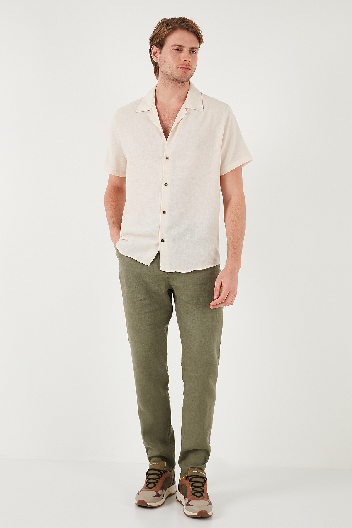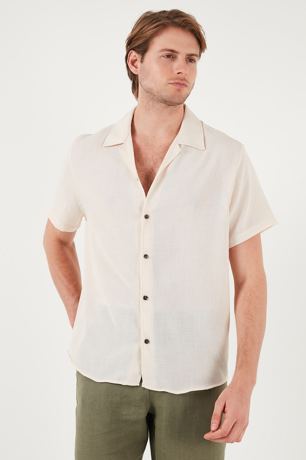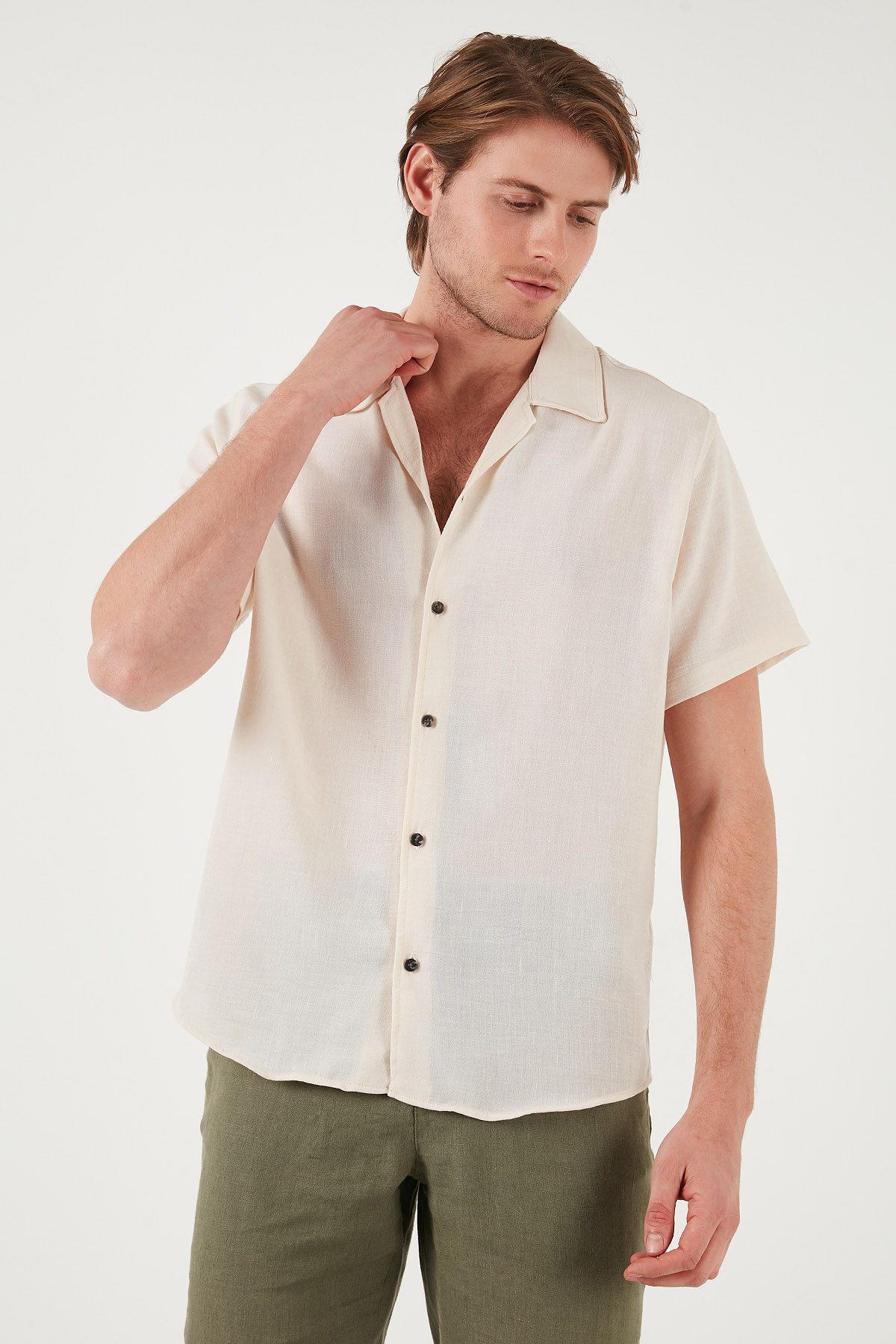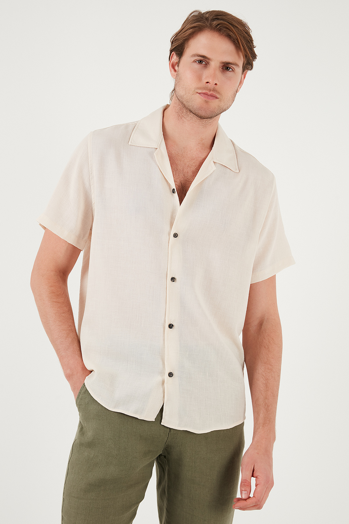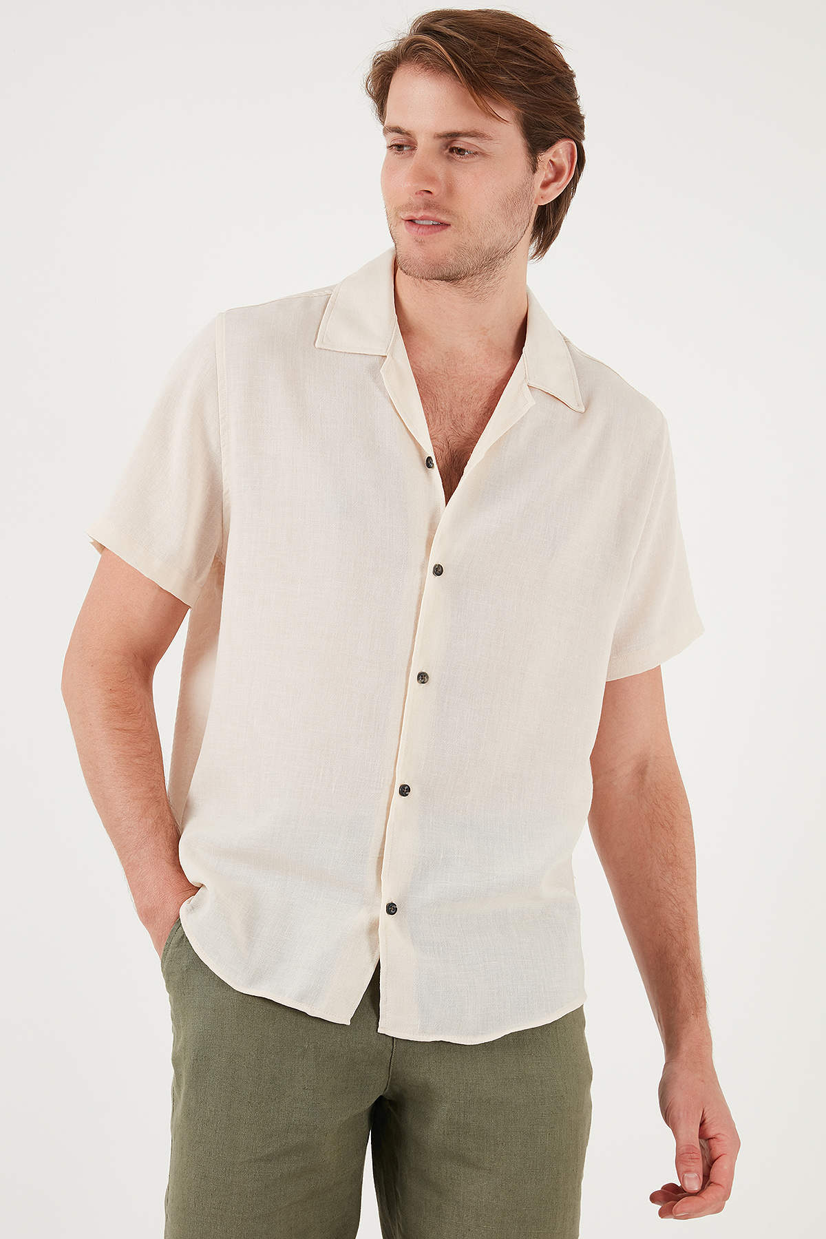 Marka : Buratti Model : Gömlek Giyim Tarzı : Günlük/Casual Materyal : % 100 Polyester Yaka Bilgisi : Apaş Yaka Kol Bilgisi : Kısa Kol Kalıp Bilgisi : Regular Fit Manken Ölçüsü : Boy : 1.88 cm / Göğüs : 99 cm / Bel : 77 cm / Basen : 97 cm / Beden : L Üretim Yeri : Türkiye 3DY1CF23S116775.19