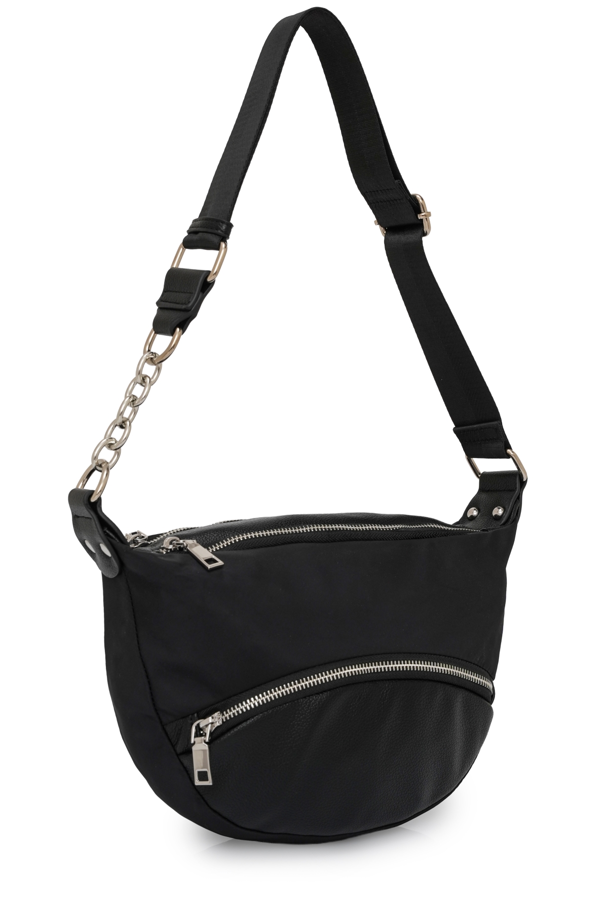Şıklığı ve kullanışlılığı bir araya getiren bu omuz çantası, modern zincir detayıyla stilinize zarif bir dokunuş katar. Geniş ana bölmesi ve fermuarlı ön cebi, günlük ihtiyaçlarınızı düzenli bir şekilde taşımanıza olanak tanır. Ayarlanabilir omuz askısı sayesinde rahat kullanım sunan bu model, hem günlük kombinlerinizde hem de özel anlarınızda şık bir tamamlayıcı olarak öne çıkar.