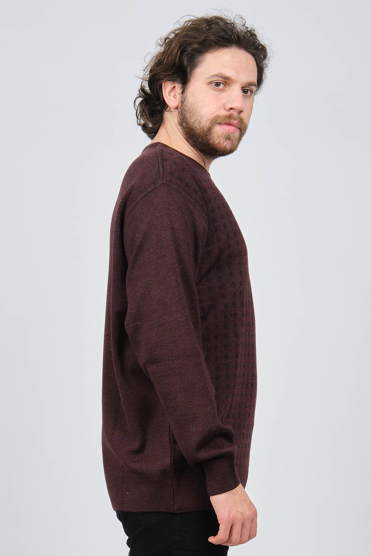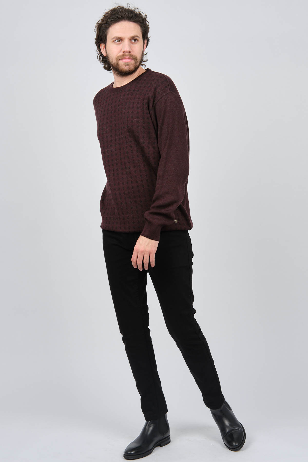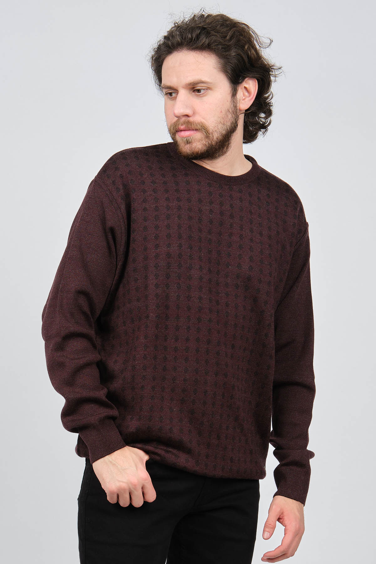 Ürün Tipi: Kazak;Materyal Bilgisi: Özel Karışımlı Akrilik;Kalıp Bilgisi: Büyük Beden;Detay: Bisiklet yaka, Uzun kollu, Önü desenli kazak;Model Ölçüleri(cm) / Üzerindeki Ürün: Boy - 188, Göğüs - 102, Bel - 90, Kalça - 103, / XXXL Beden