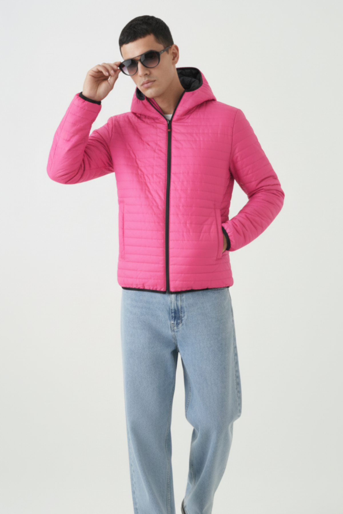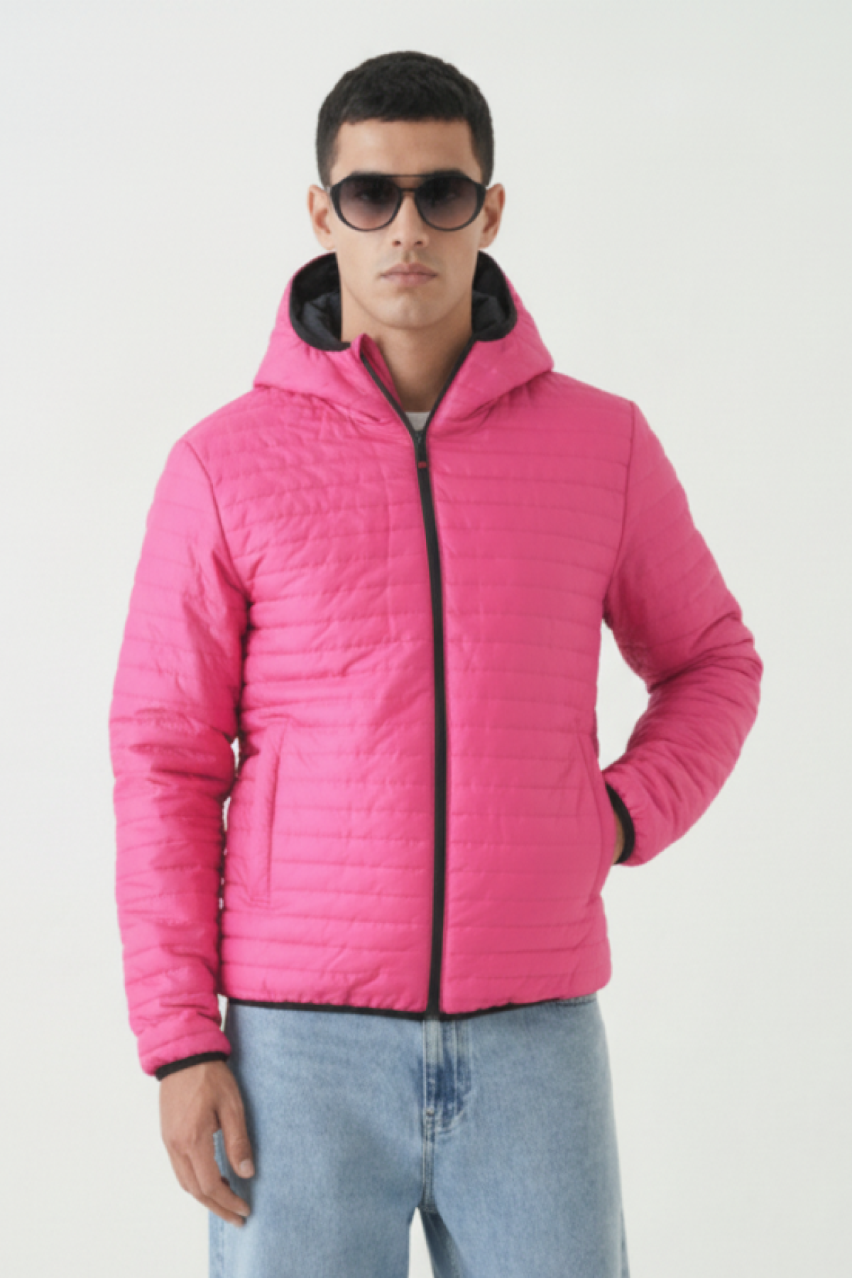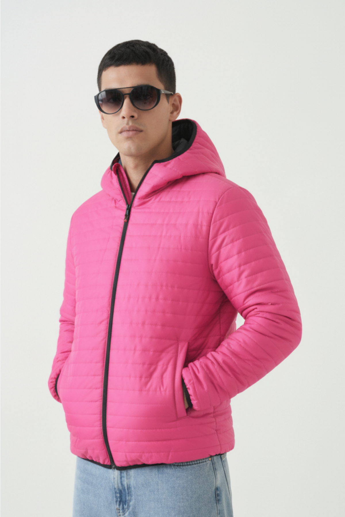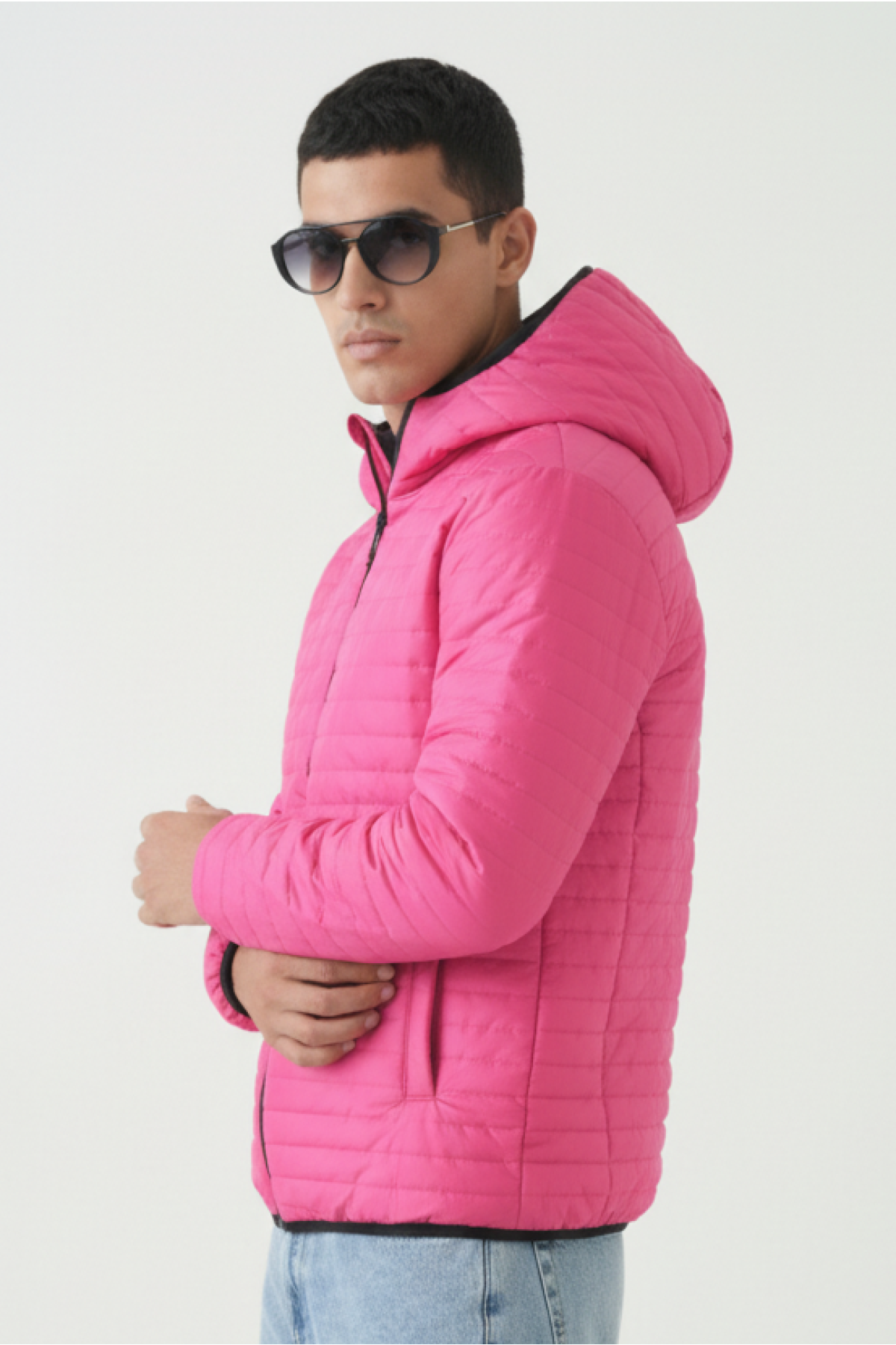 AnasayfaGiyimDış giyimMontŞişme montİçi astarlı cepli kapüşonlu jel elyaf su ve rüzgar geçirmez şişme kışlık erkek mont
