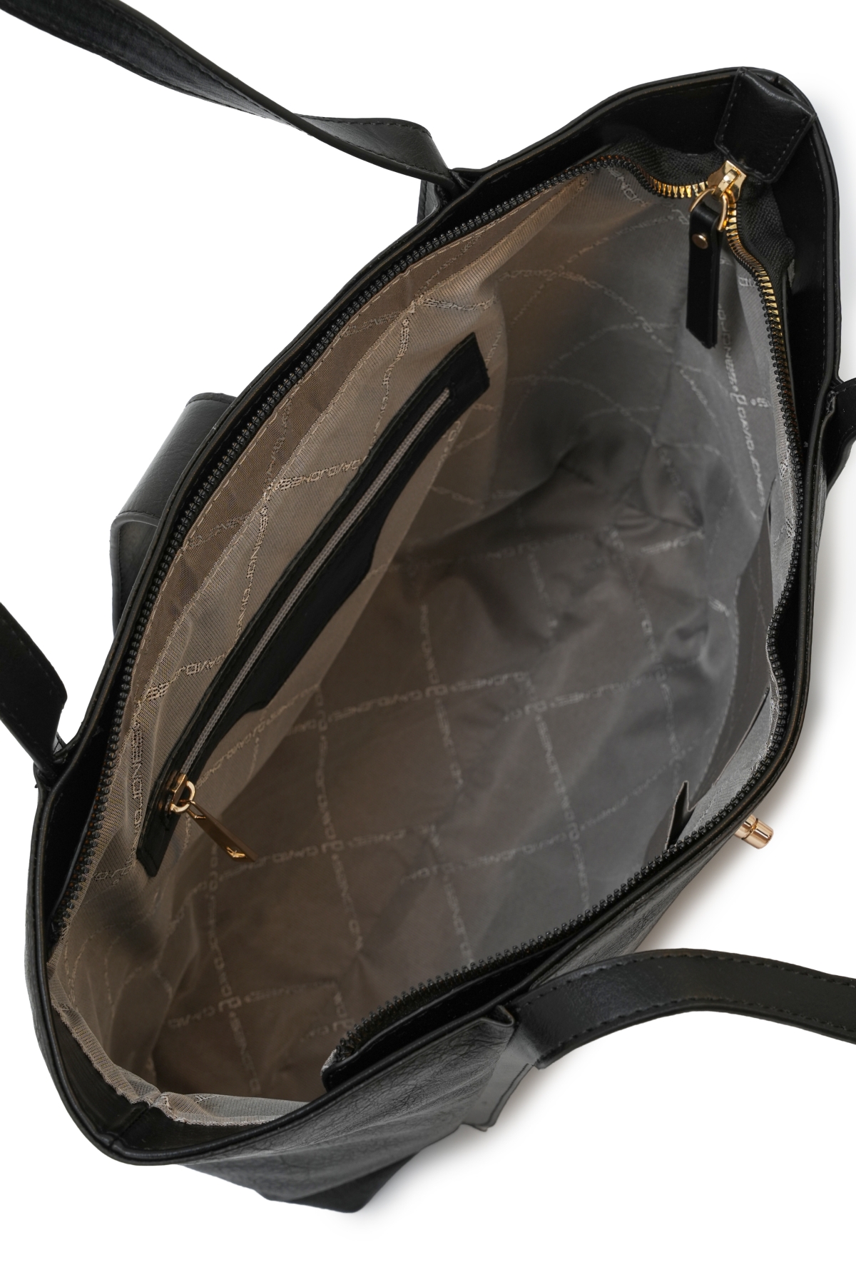 Ön yüzündeki dikkat çekici büyük logo detayıyla tasarlanan bu kapaklı shopper çanta, günlük şıklığınızı modern bir dokunuşla tamamlıyor. Geniş iç hacmi sayesinde cüzdan, telefon, tablet ve daha birçok eşyayı rahatlıkla taşıyabilir, gün boyu konforlu kullanımın tadını çıkarabilirsiniz. Uzun omuz askılarıyla hem elde hem omuzda kolayca taşınabilir.