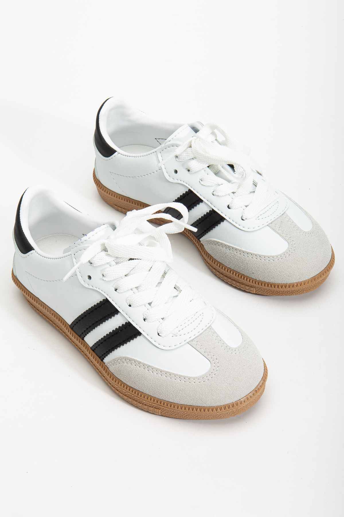 sezonun dikkat çeken sneaker modellerinden olan bu bağcıklı ayakkabı, düz tabanı ile de sokak modasının en trend stiline kavuşmanızı sağlıyor. Günlük kombinlerinize modern tasarımı ve konforu ile eşlik edecek bu spor ayakkabı vazgeçilmeziniz olmaya hazır. stoklardaki yerini alan bu ayakkabıya online alışverişlerinize özel fırsatlarından yararlanarak hemen sahip olabilirsiniz! Topuk Tipi:Düz Topuk Topuk Yüksekliği:3 cm Materyal:Poliüretan Kalıp:TAM KALIP Kategori Trendleri:Günlük Ayakkabı Kategori Trendleri:Bağcıklı Ayakkabı İÇ TABAN ÖLÇÜSÜ (37 Numara):24 cm TARAK ÖLÇÜSÜ (37 Numara):12 Koleksiyon:Basic İç Astar Materyali:Suni Deri İç Taban Materyali:Suni Deri Saya Materyali (Dış-Yüz):Suni Deri