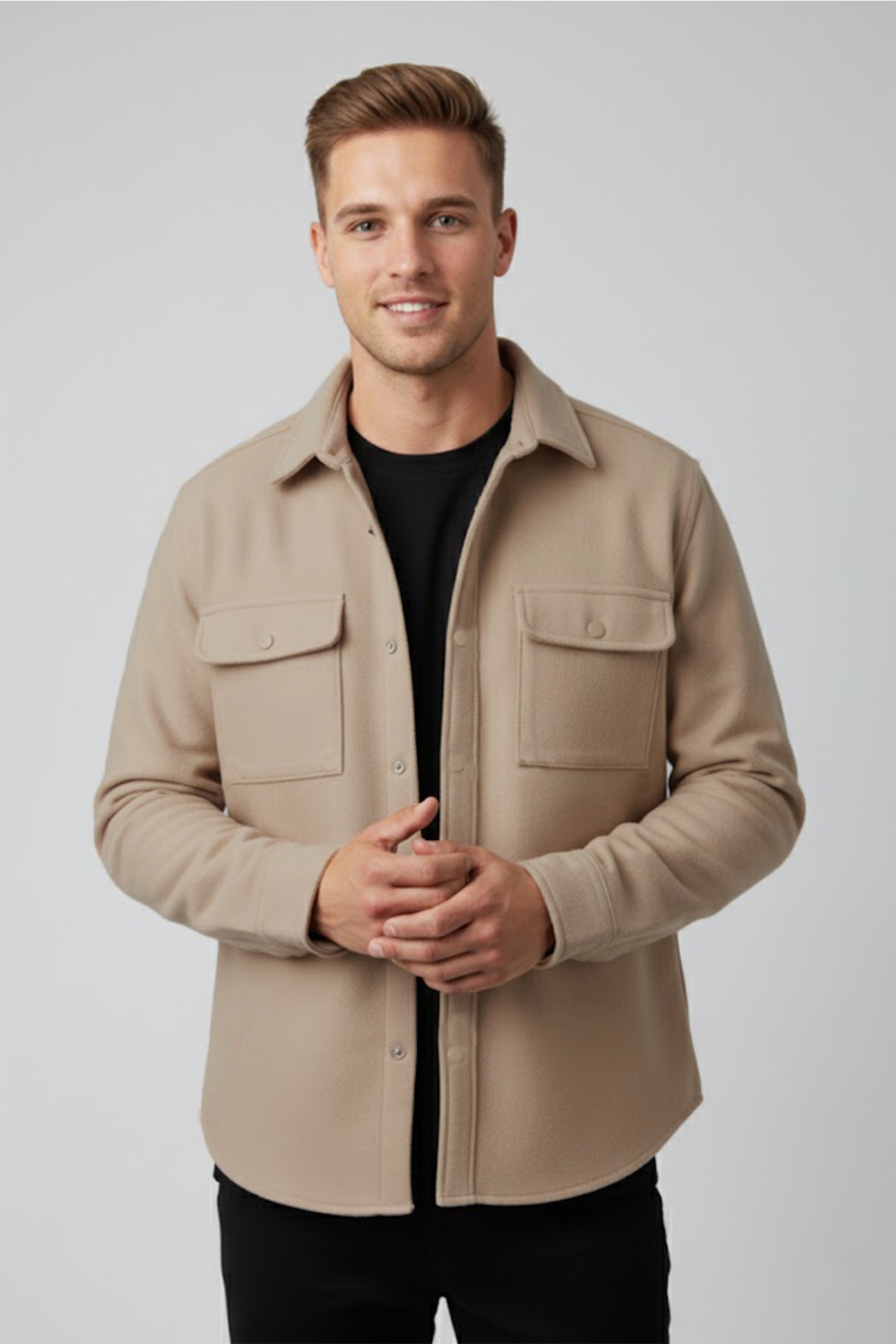 ✔️ Yumuşak kaşe dokusu, rahat kesimi ve fonksiyonel kapaklı cepleriyle soğuk havalarda sıcak tutan ideal bir dış giyim parçasıdır.