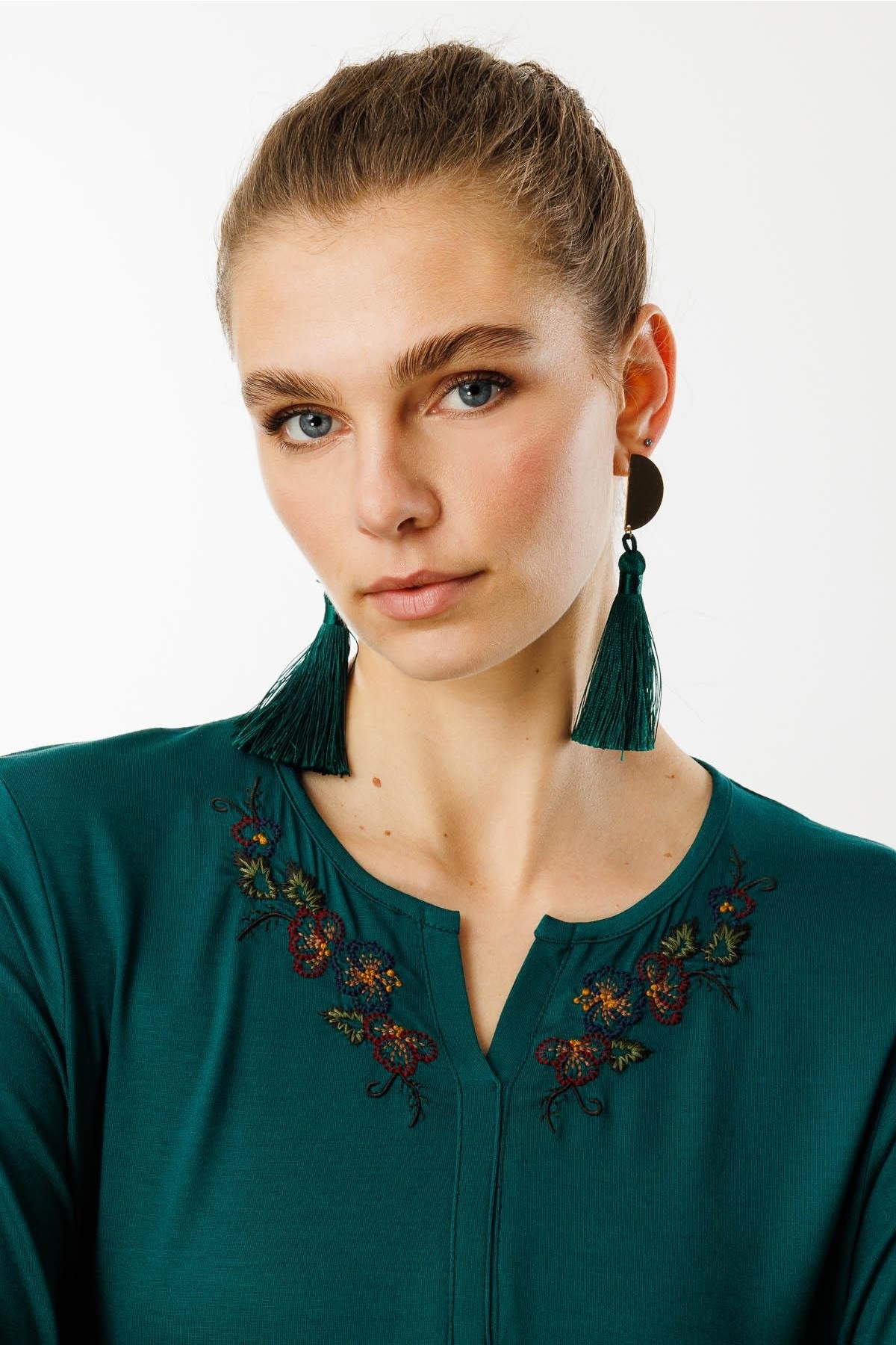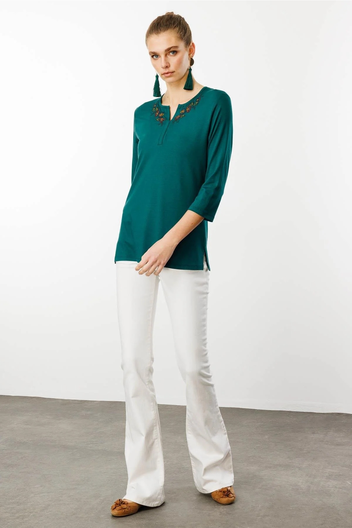 Ürün Tipi: Bluz;Kalıp Bilgisi: Standart kalıp;Materyal Bilgisi: 95% Viskon, 5% Elastan;Menşei : Türkiye (TR);Detay: Açma yaka tasarımıyla modern bir şıklık sunan, standart kalıplı ve truvakar kollu bu bluz, düz renk deseniyle sade ve zarif bir görünüm arayanlar için mükemmel bir tercih. Hem günlük kullanıma hem de özel günlere uyum sağlayan bu tasarım, her gardırobun vazgeçilmez parçalarından biri olmaya aday. Konforu ve şıklığı bir araya getiren bu bluz, aksesuarlarla kolayca tamamlanabilir ve stilinize kişisel bir dokunuş ekler;Model Ölçüleri(cm) / Üzerindeki Ürün: Boy - 177, Göğüs - 87, Bel – 60, Kalça - 88;Numune Beden: Modelimiz ürünün en küçük bedenini denemiştir.