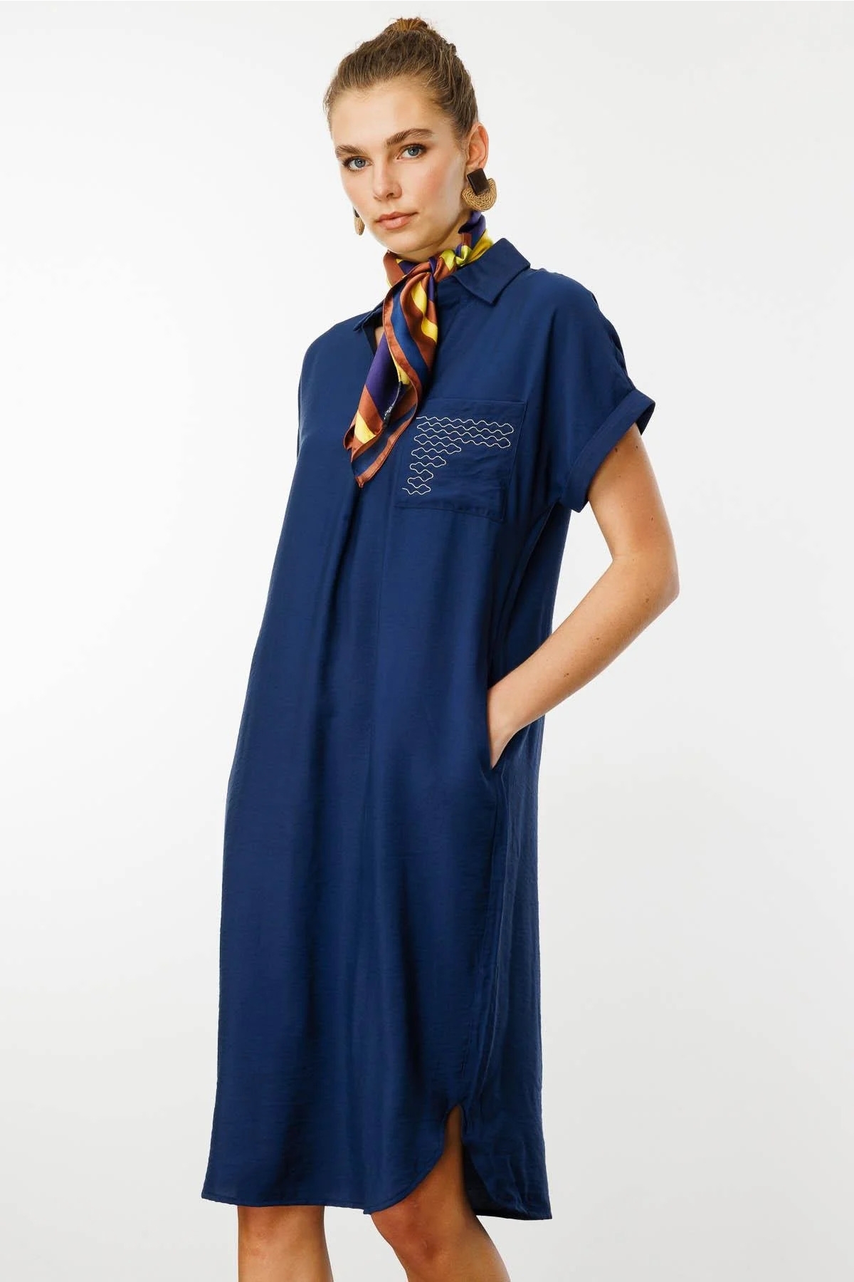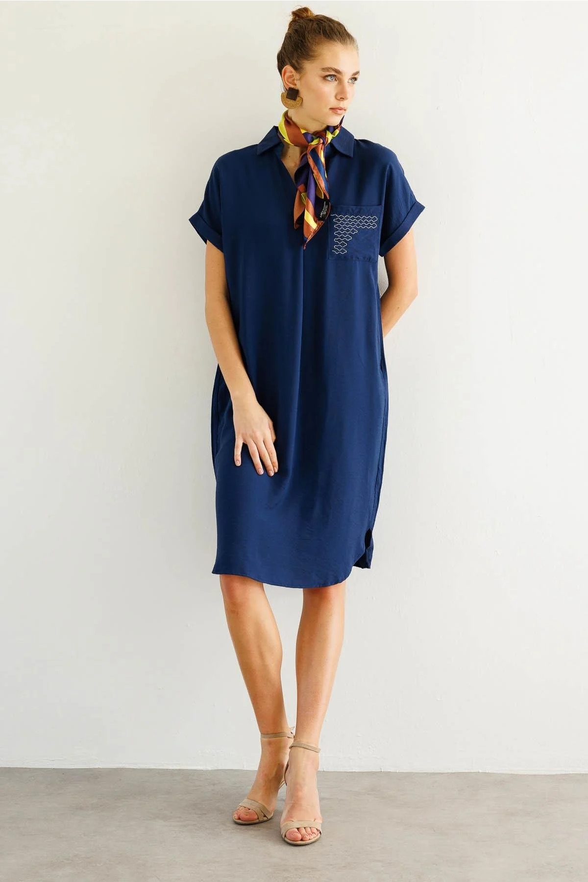 Ürün Tipi: Elbise;Kalıp Bilgisi: Standart kalıp;Materyal Bilgisi: 92% Viskon, 8% Polyamid;Menşei : Türkiye (TR);Detay: Polo yaka tasarımıyla klasik ve zarif bir görünüm sunan, standart kalıplı ve kısa kollu midi boy elbise, düz renk deseniyle şıklık ve sadeliği bir araya getirir. Günlük giyimden özel davetlere kadar her ortamda rahatlıkla kullanılabilecek bu elbise, zarif kesimi sayesinde her bedende hoş bir duruş sağlar. Midi boy uzunluğu, modern bir dokunuş sunarken, hareket özgürlüğü sağlar ve konforlu bir kullanım sunar. Şıklığı pratiklikle buluşturmak isteyenler için mükemmel bir tercihtir;Model Ölçüleri(cm) / Üzerindeki Ürün: Boy - 177, Göğüs - 87, Bel – 60, Kalça - 88;Numune Beden: Modelimiz ürünün en küçük bedenini denemiştir.