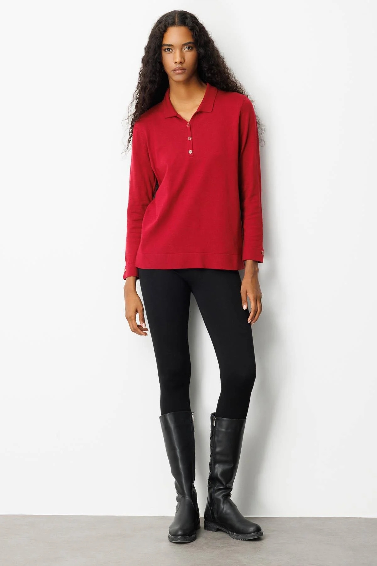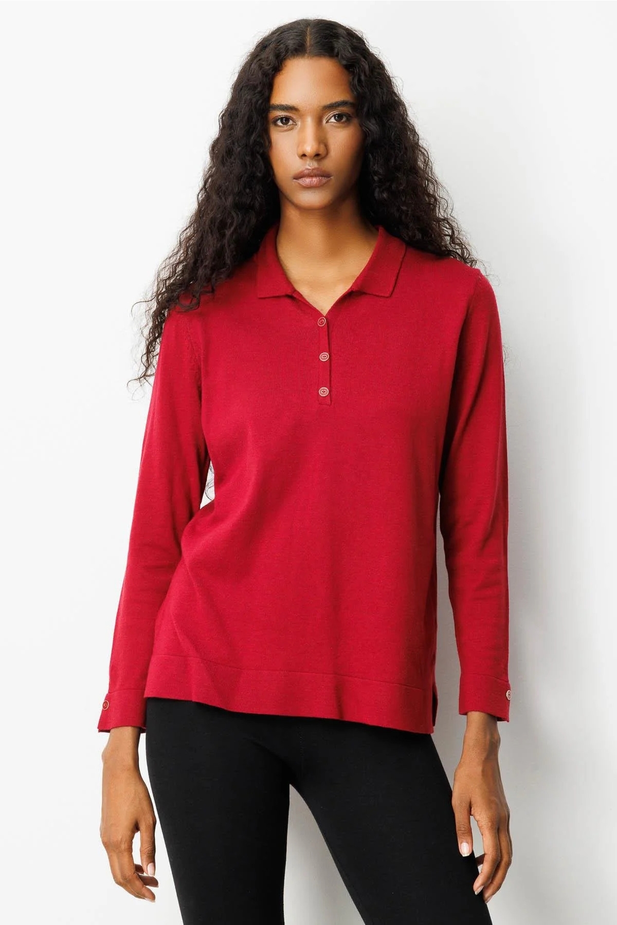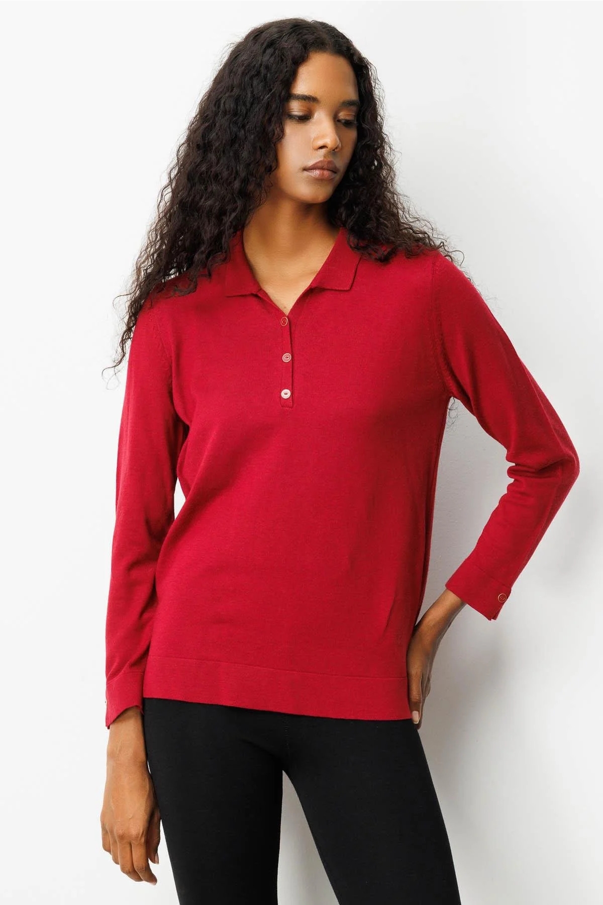 Ürün Tipi: Bluz;Kalıp Bilgisi: Regular fit;Materyal Bilgisi: 52% Viskon, 21% Poliamid, 27% PBT;Menşei : Türkiye (TR);Detay: Düz renk tasarımıyla sade ve zarif bir görünüm sunan bu polo yaka triko bluz, standart kalıbıyla konforlu bir kullanım sağlar. Uzun kollu yapısı sayesinde serin havalarda ideal sıcaklık sunarken, polo yaka detayı klasik şıklığı modern bir dokunuşla buluşturur. Günlük stilinize hem rahatlık hem de zarafet katacak zamansız bir parçadır;Model Ölçüleri(cm) / Üzerindeki Ürün: Boy - 180, Göğüs - 80, Bel – 60, Kalça - 92;Numune Beden: Modelimiz ürünün en küçük bedenini denemiştir;Ürün Boyu(cm): 62;