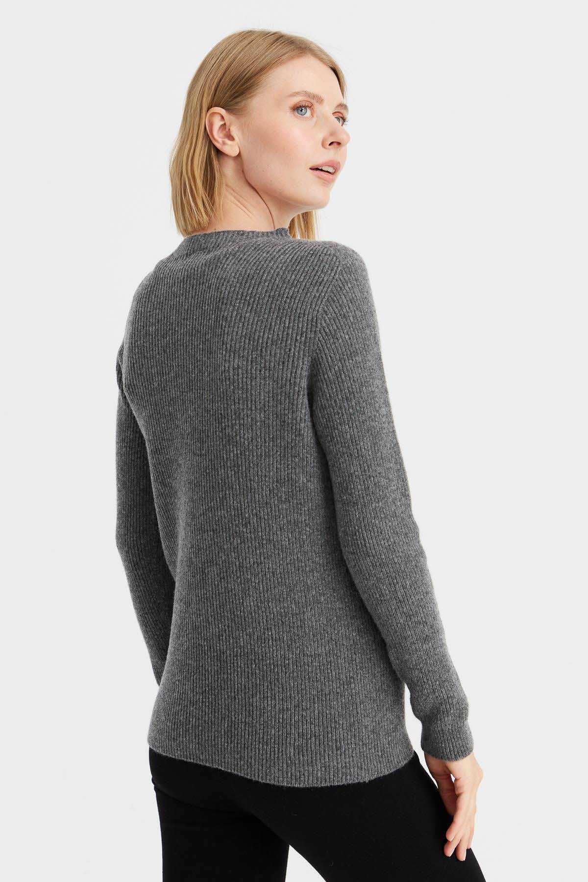 Ürün Tipi: Kazak;Kalıp Bilgisi: Standart kalıp;Materyal Bilgisi: %80 Yün %20 PA;Detay: Uzun kollu, sıfır yaka, düz renk kazak; Model Ölçüleri(cm) / Üzerindeki Ürün: Boy - 179, Göğüs - 84, Bel – 62, Basen - 90 / S beden;Ürün Boyu(cm): 65;
