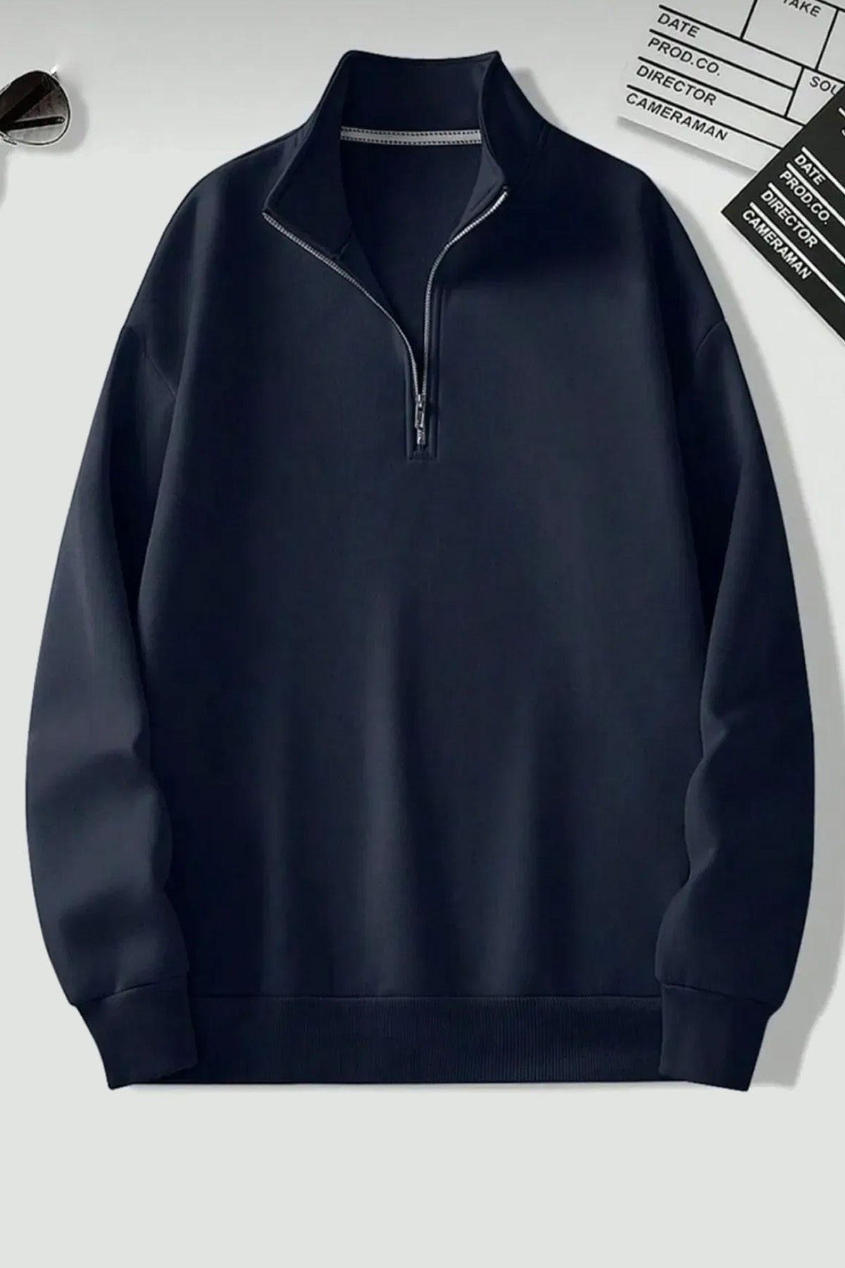 uyguntarz Dik Yaka Yarım Fermuarlı Düz Kazak Sweatshirt