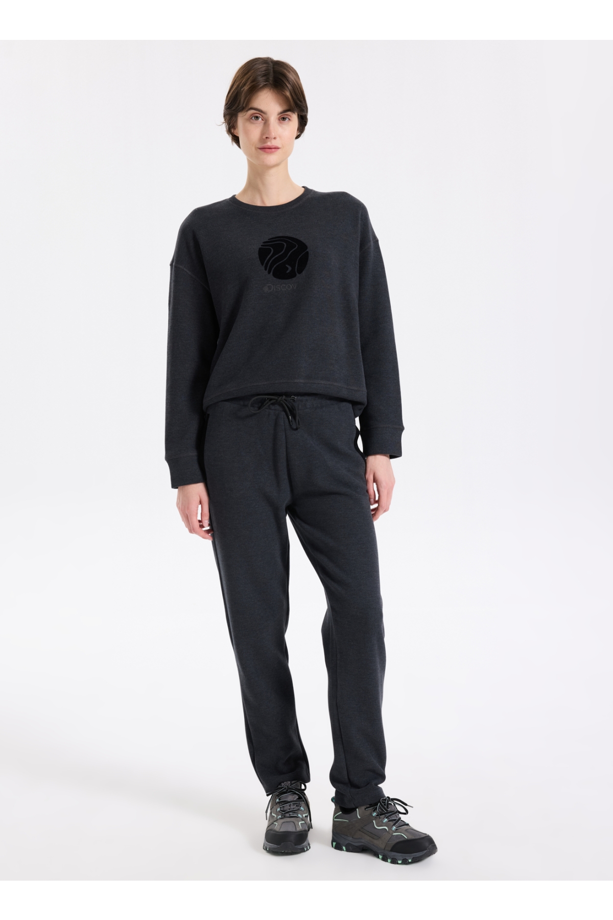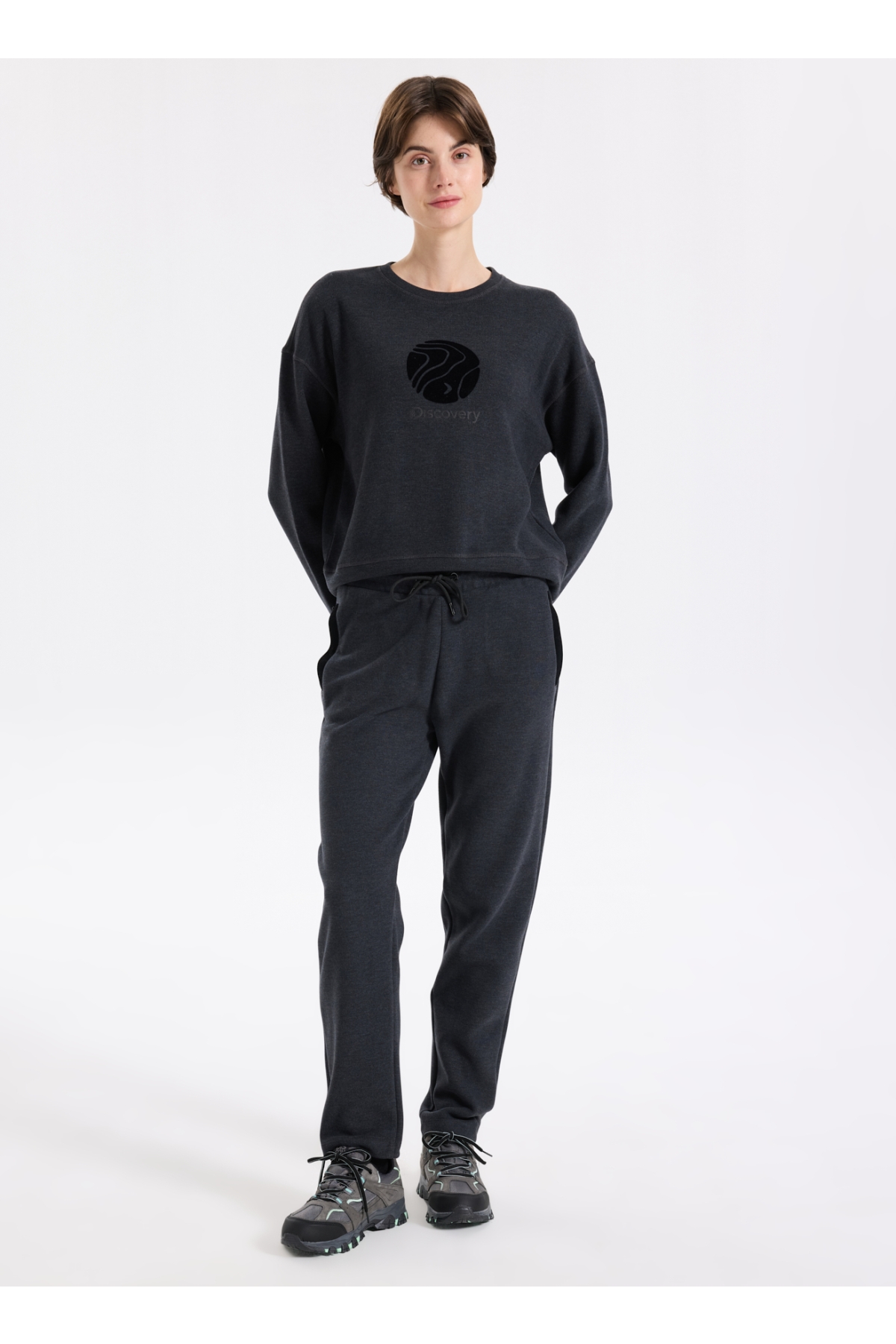 Discovery Expedition D5WL-EA3597 Antrasit Melanj Relaxed Düz Kadın Eşofman Altı
