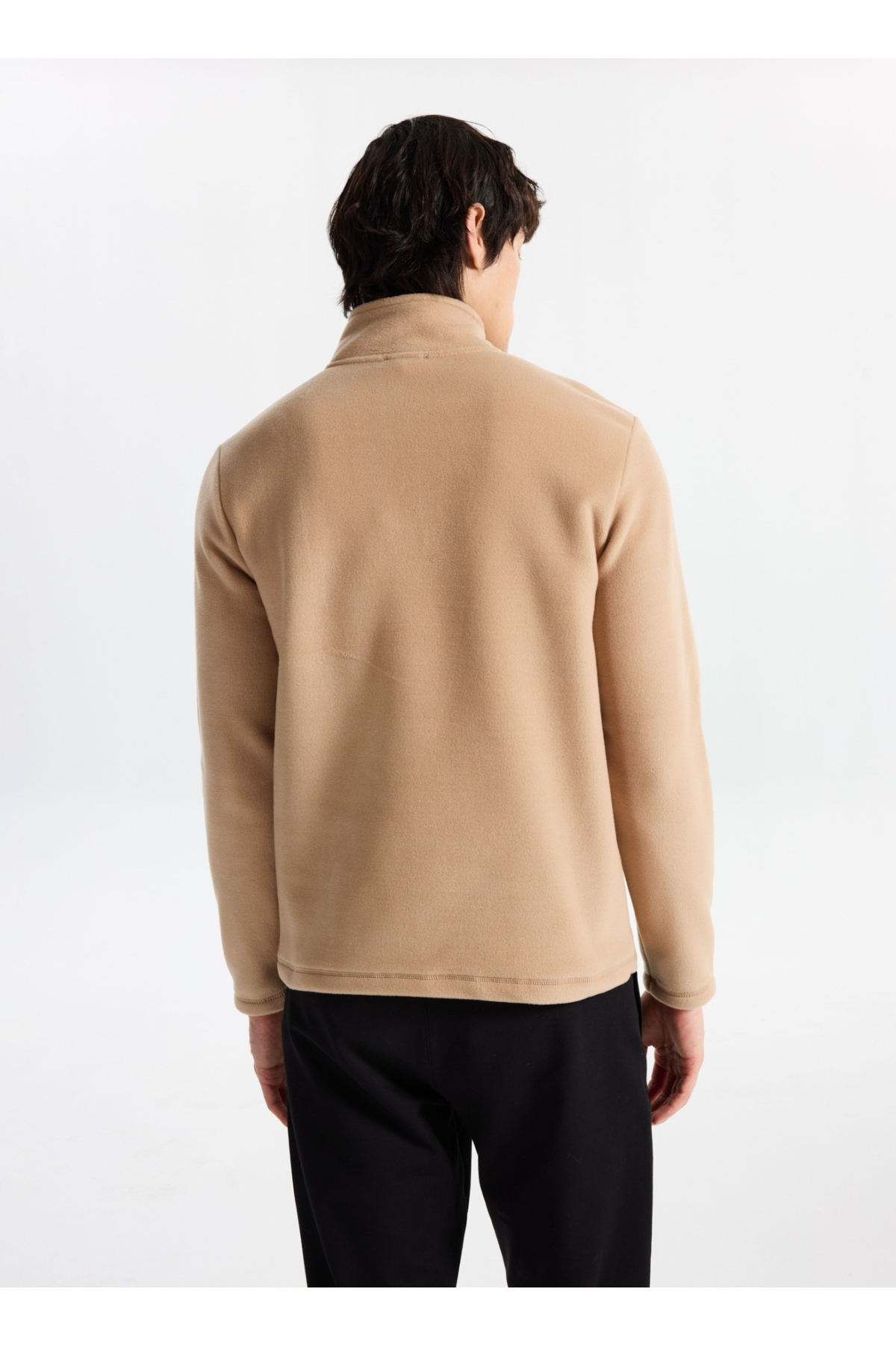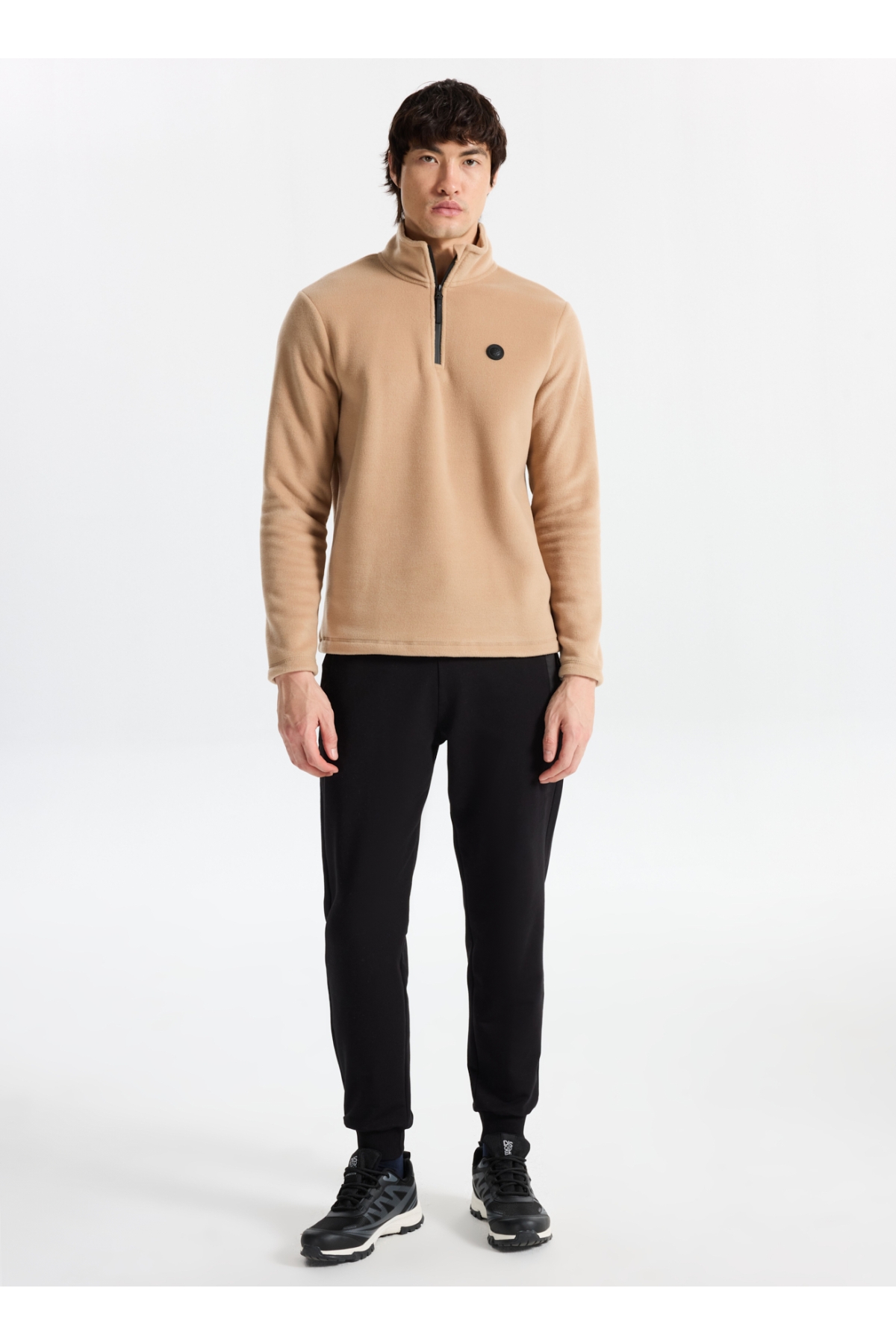 Discovery Expedition D5WM-SWT3300 Bej Fermuarlı Yaka Basic Düz Erkek Polar Sweatshırt